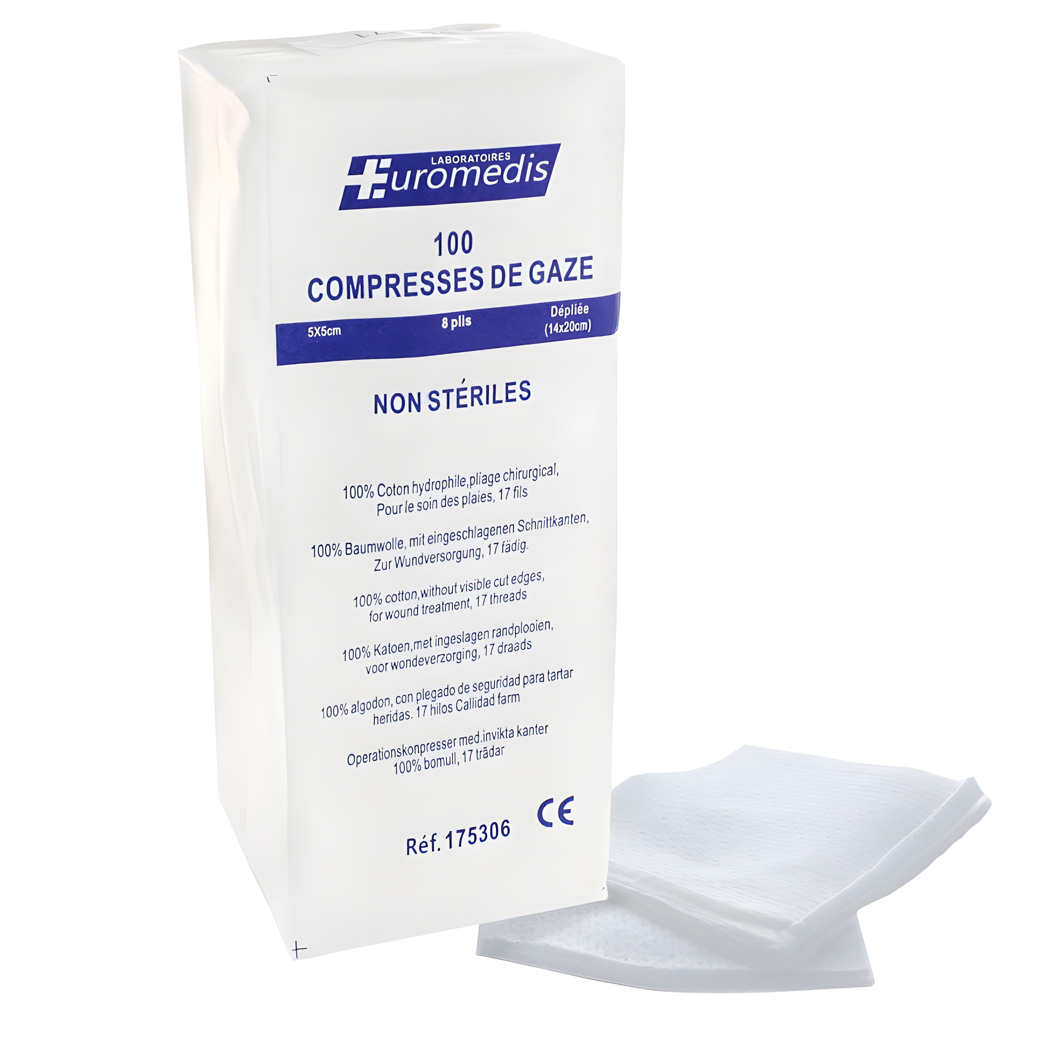 Compresse Non-tissée Stérile - 40g/m2 - Pochette de 5 compresses - Euromédis