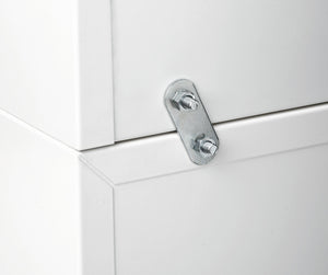 • Les boîtes peuvent être empilées et vissées ensemble à l'arrière par des sangles en acier.