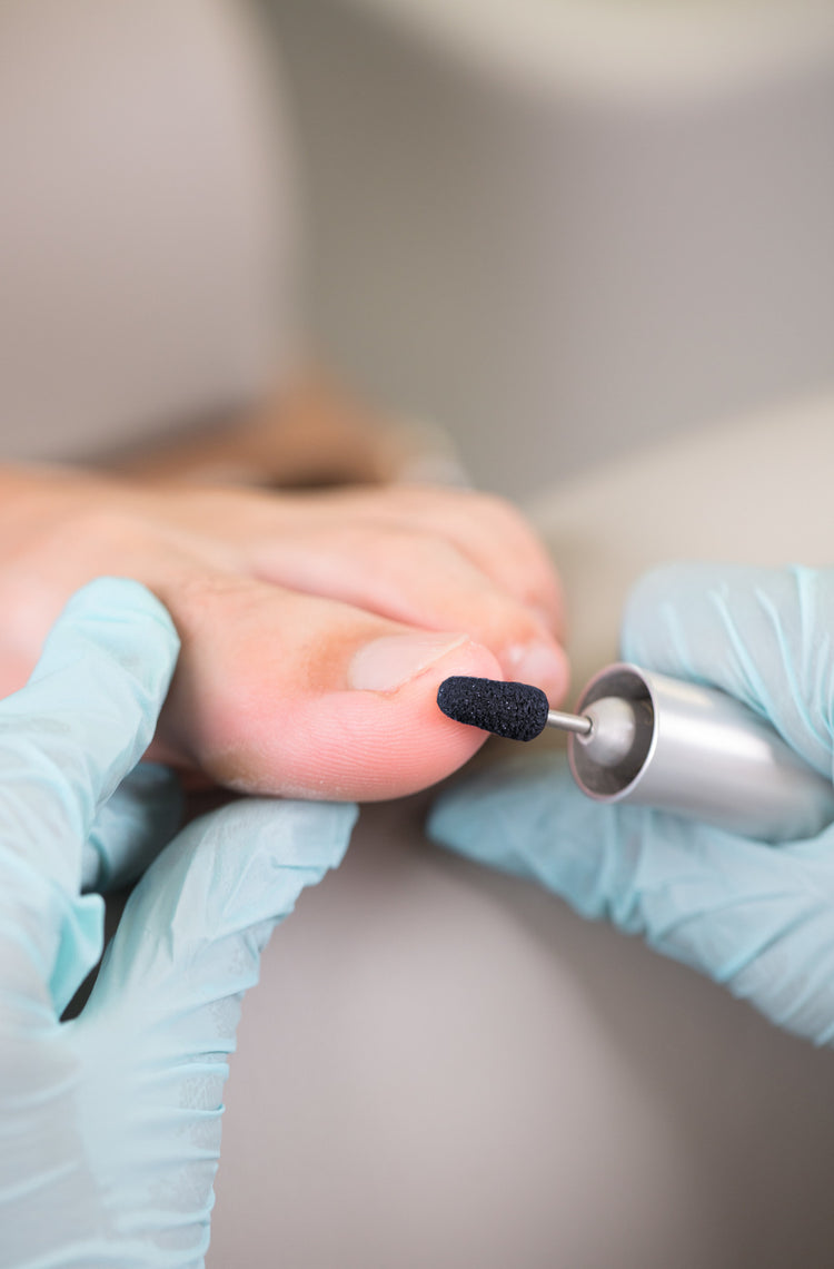 Capuchons de broyage pour enlever les couches cornées sèches et craquelées et pour lisser après une préparation rugueuse à l'aide d'un rabot ou d'un scalpel. Certifié comme dispositif médical.