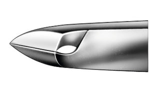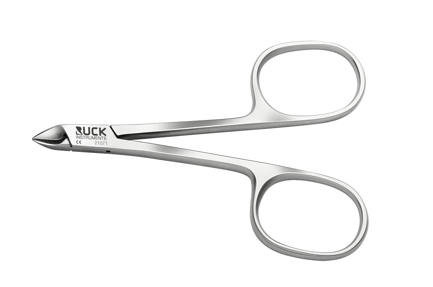 Ciseaux à cuticules avec surface de coupe droite. La cuisse courte offre une vue optimale sur la zone de travail et un travail particulièrement sensible sur la peau et les cuticules.