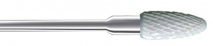 Denture croisée avec un pouvoir abrasif élevé. Pour le fraisage des ongles épais, de leur contour et des ongles mycosés.