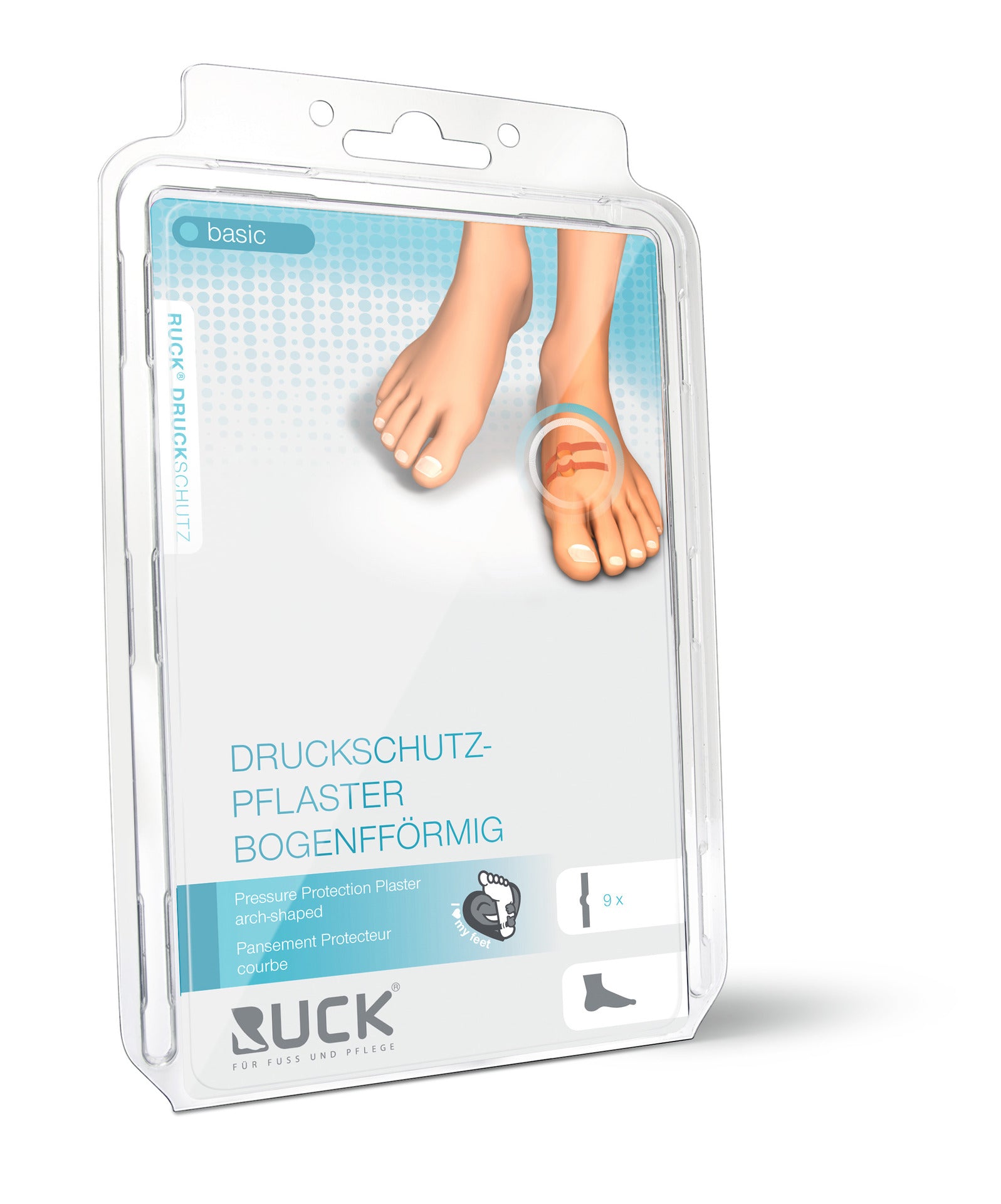 Enduit de protection contre la pression avec rembourrage intérieur en latex souple, courbé ou poinçonné droit. Protège contre les douleurs de pression et de friction dans les cors, les cornées et les ampoules.